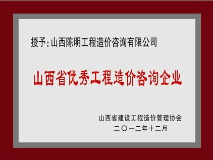 山西省優(yōu)秀工程造價(jià)咨詢(xún)企業(yè)